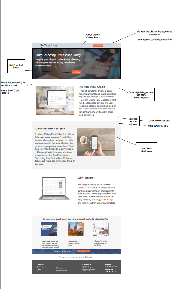 TrueRent started in 2014. I quit my marketing job to work for TrueRent full-time in 2018. It was time for a makeover. We took years to develop this software, and the web design needed to coincide with the high-level, intuitive, and all-encompassing product we had created. Our original design contained three colors, that were quite monotone. Through research, we discovered that it only takes 60 seconds for people to make a subconscious judgment about a product based on color alone. Therefore the chosen colors can be useful in the way of improved conversion for our product as well as advanced usability of the product.