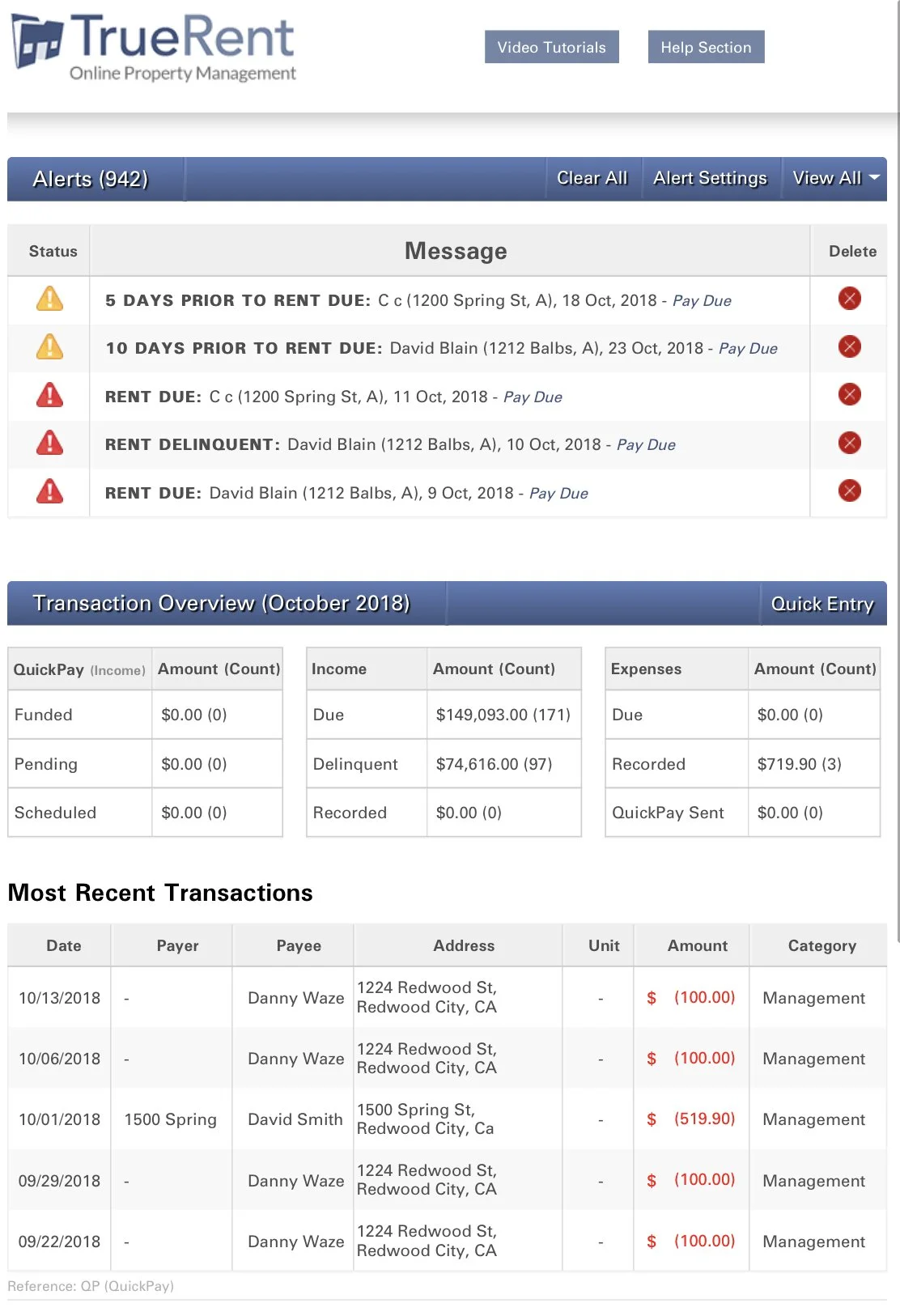 We wanted to keep the Alerts, users found this extremely helpful, allowing them to address the necessary items, like delinquent rent for example.