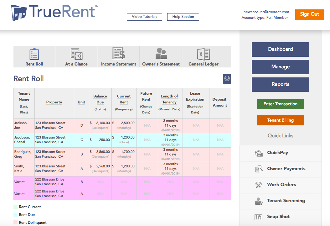 Additionally attached is the Tenant Billing, Transaction Overview, Tenant Management and Rent Roll